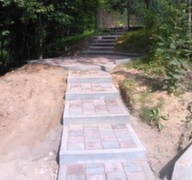 1. В местах, где вы планируете сделать дорожки, необходимо снять 15 - 35 см земли , выровнять площадку и уплотнить виброплитой основание. В случае мягкого грунта дополнительно увлажняем его (можно полить из шланга или лейки, главное, делать это равномерно) и утрамбовываем, чтобы избежать деформации дорожки со временем, застилаем всю поверхность геотекстилем (если укладываем тротуарную плитку под заезд автомашин, то засыпаем поверхность щебнем). Причем высота насыпи должна быть 15 – 20 см, в зависимости от типа грунта. Если тротуарная плитка укладывается на дорожки, то засыпаем всю поверхность песком, с высотой насыпи 8 – 10 см, выравниваем, тщательно уплотняем виброплитой, покрываем сверху песчано-цементной смесью толщиной 4-5 см, снова выравниваем, после повторного уплотнения укладываем тротуарную плитку от себя по диагонали. После того, как вся тротуарная плитка уложена, просыпаем швы песчано-цементной смесью, сметаем остатки смеси с плитки и трамбуем ее виброплитой с использованием резинового коврика.